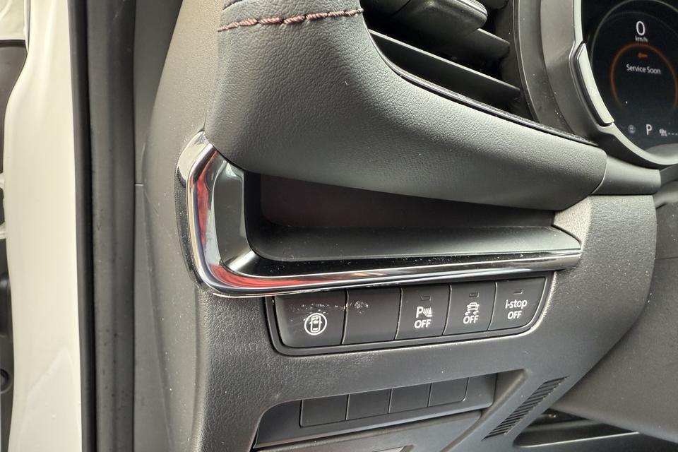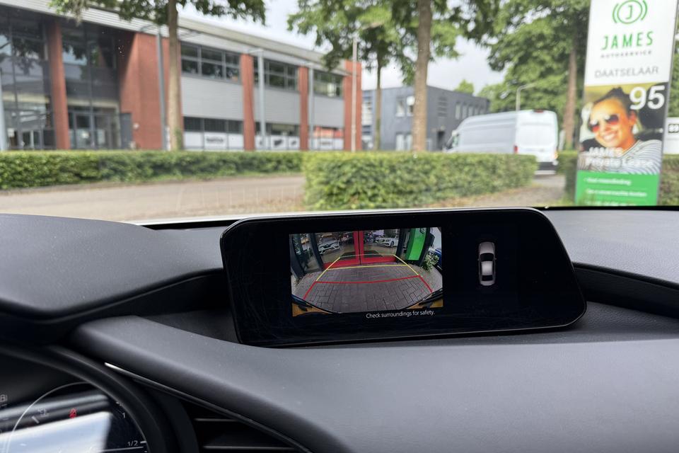 Kommaar-kommaar-kommaar, aldus de achteruitrijcamera. Iedere centimeter vrije ruimte komt haarscherp in beeld. Schadevrij inparkeren maar! Adaptive cruise control is een comfortabele en veilige optie. Het systeem reguleert de snelheid en houdt automatisch afstand tot uw voorligger. Vanaf elke plek contact maken met deze auto: dat kan met behulp van remote services, die u simpel activeert met uw smartphone. Voor een krachtige en natuurlijke geluidsweergave zorgt het high performance audiosysteem. Beste route, verwachte aankomsttijd: uw eigen navigatiesysteem vertelt u alles! Met electronic climate control, DAB ontvangst, regensensor, keyless entry, automatisch dimmende buitenspiegels en lederen stuur is deze Mazda helemaal compleet.