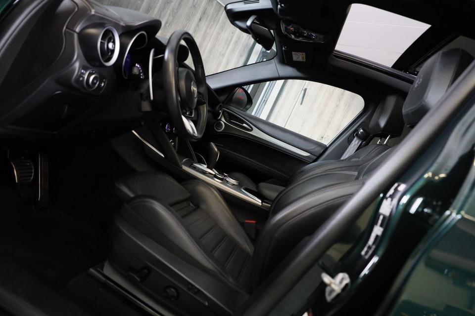 Gebouwd voor liefhebbers van autorijden, deze Alfa Romeo STELVIO levert sportieve prestaties en onafgebroken rijplezier. De uitstekende prestaties van deze auto komen van de viercilinder motor en de automatische transmissie. Hoge kwaliteit is ook binnenin aanwezig. Kijkt u maar naar de leren bekleding! U past de stoelen moeiteloos aan, ze zijn elektrisch in te stellen en hebben bovendien een geheugen. De achterbankverwarming, het verwarmbare stuurwiel en de verwarmbare voorstoelen brengen passagiers en bestuurder snel weer op temperatuur, ongeacht hoe koud het buiten is. Comfort, licht en het complete gevoel van ruimte wordt verzorgd door het elektrisch bediende panoramadak. De elektrische achterklep opent met een druk op de knop, zodat u gemakkelijk toegang heeft tot de bagageruimte. De gasontladingslampen van de xenonverlichting zorgen voor een krachtige en heldere lichtbundel. In deze auto profiteert u onder andere ook van: open dak, 21 inch lichtmetalen velgen, zwarte hemelbekleding, extra getint glas, in delen neerklapbare achterbank en LED-achterlichten.