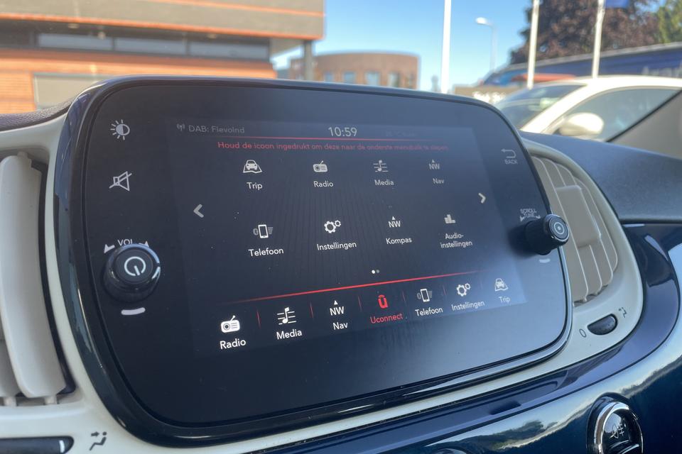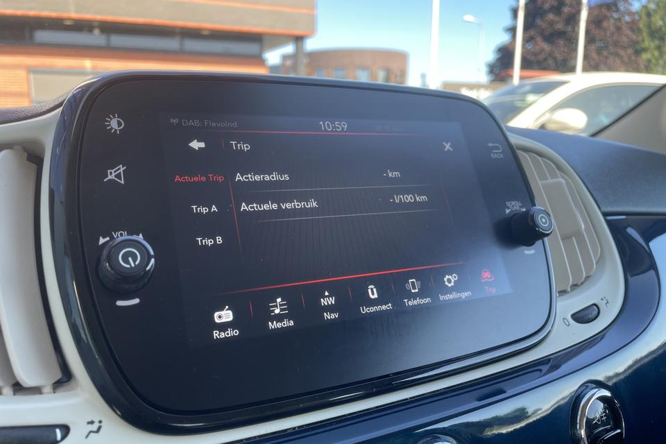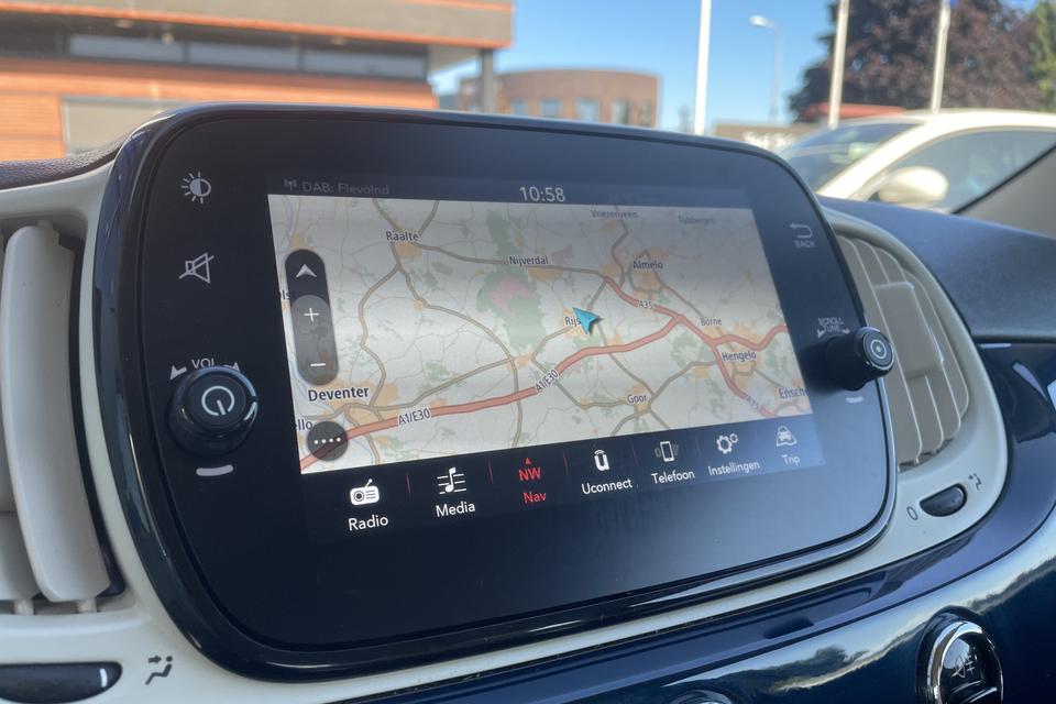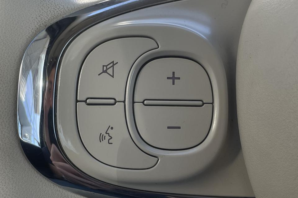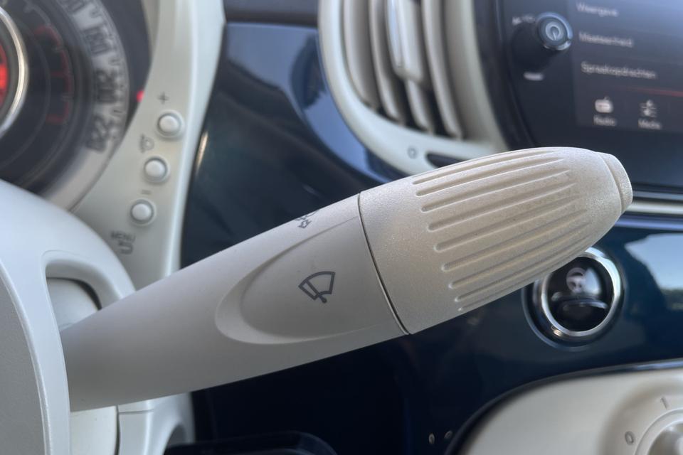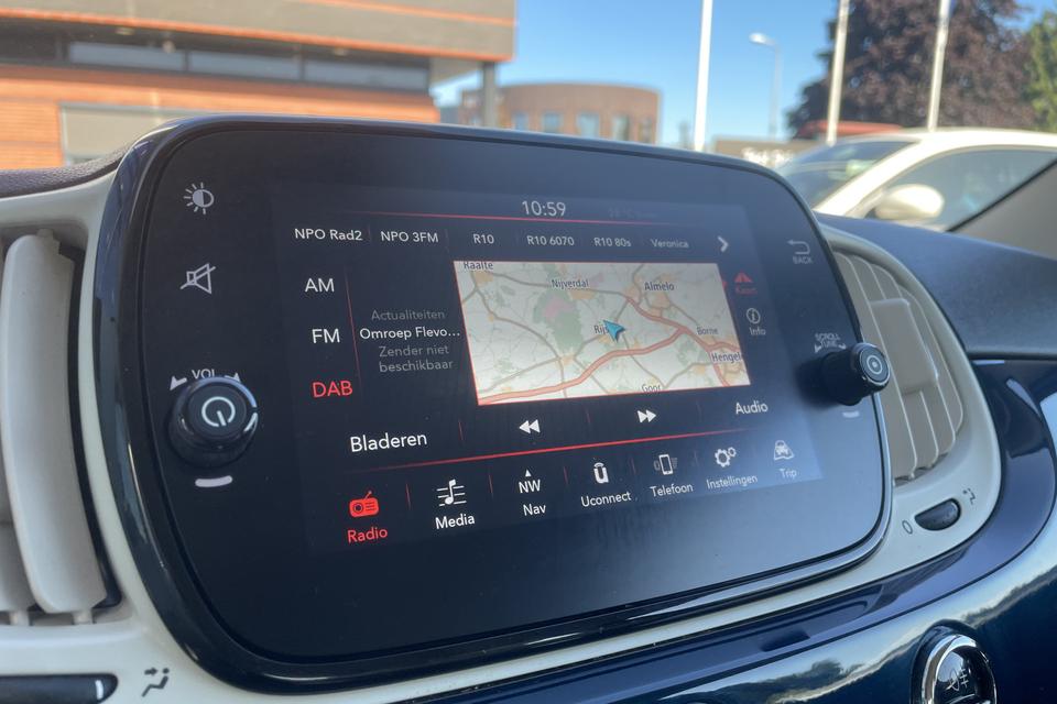 Gemakkelijk en veilig is de bediening het audiosysteem en het navigatiesysteem met knoppen op het stuur. De audio-kwaliteit is geweldig, dankzij de DAB-ontvangst. Ook over uw schouder ziet u onderweg niet alles wat er aan de achterzijde gebeurt. Daarom heeft deze Fiat 500 C een achteropkomend verkeer waarschuwing. Natuurlijk is er ook cruise control aan boord, waarmee u meer ontspannen en zuiniger rijdt. Natuurlijk heeft deze auto ook airconditioning. En deze auto heeft ook lederen stuur en centrale deurvergrendeling met afstandsbediening als standaard uitrusting.