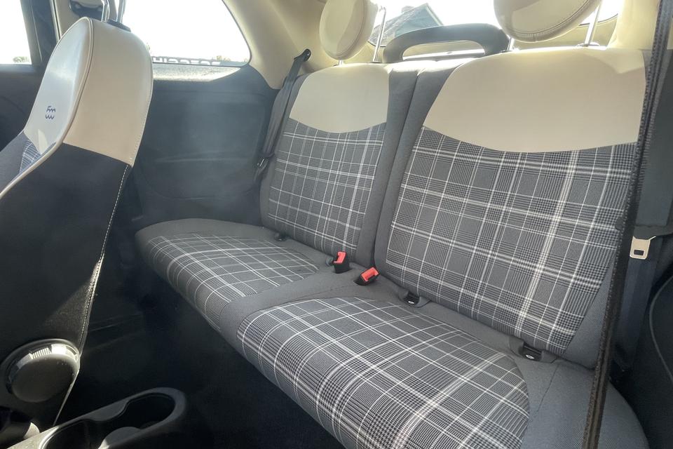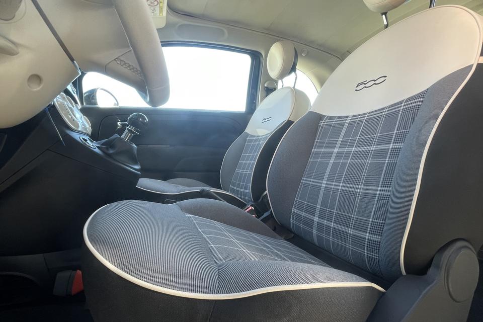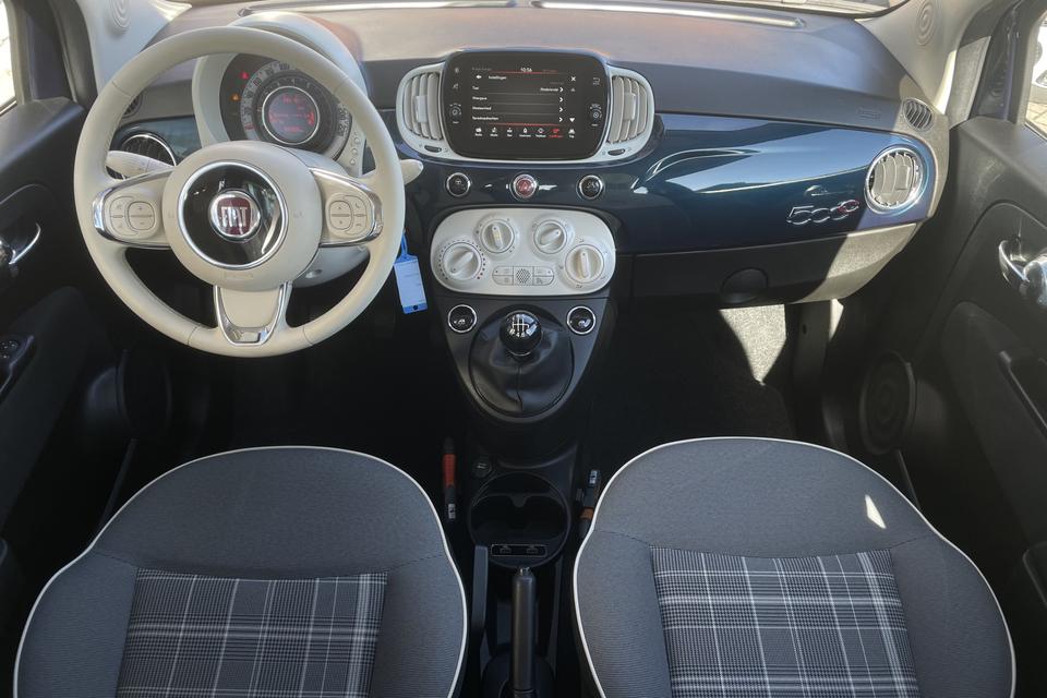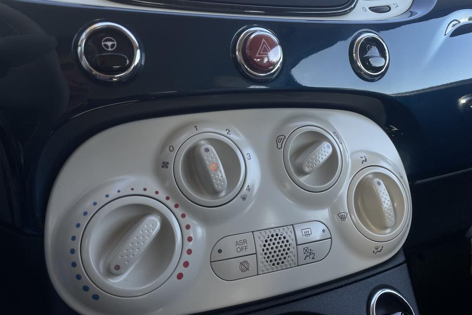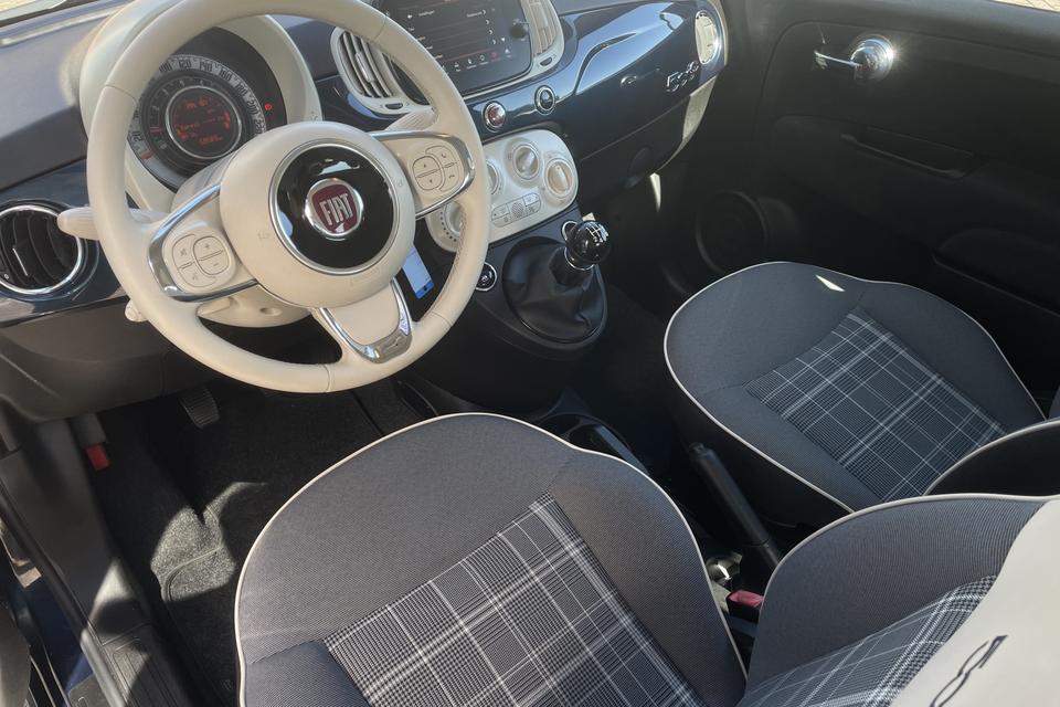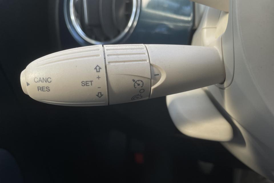 Gemakkelijk en veilig is de bediening het audiosysteem en het navigatiesysteem met knoppen op het stuur. De audio-kwaliteit is geweldig, dankzij de DAB-ontvangst. Ook over uw schouder ziet u onderweg niet alles wat er aan de achterzijde gebeurt. Daarom heeft deze Fiat 500 C een achteropkomend verkeer waarschuwing. Natuurlijk is er ook cruise control aan boord, waarmee u meer ontspannen en zuiniger rijdt. Natuurlijk heeft deze auto ook airconditioning. En deze auto heeft ook lederen stuur en centrale deurvergrendeling met afstandsbediening als standaard uitrusting.