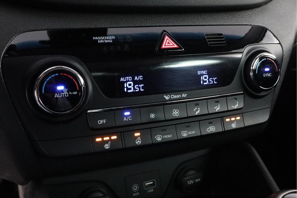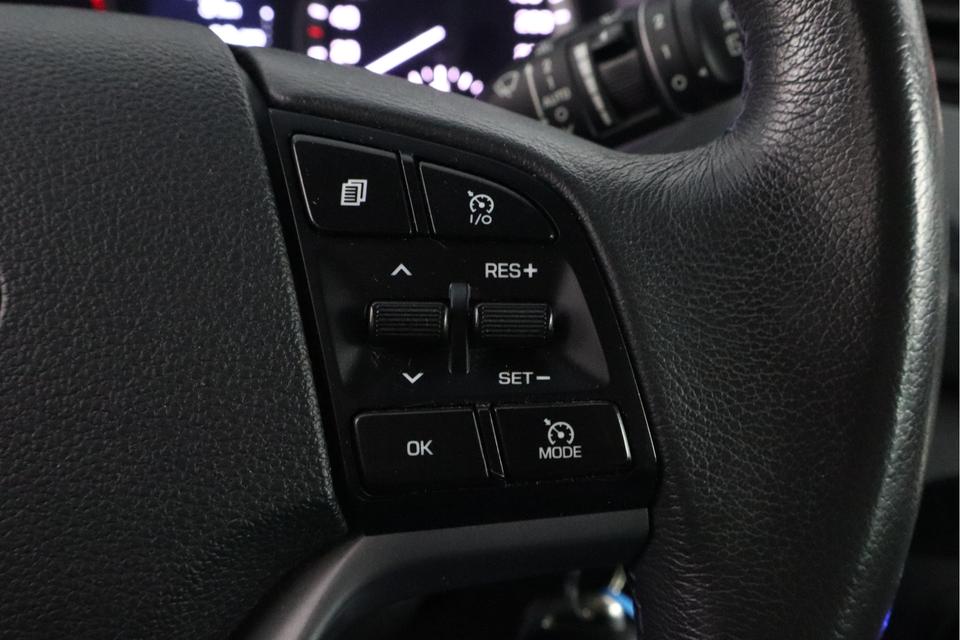Zelfs een kleine aanrijding kan flinke kosten veroorzaken. Gelukkig laat de achteruitrijcamera precies zien wat er zich achter de auto bevindt en geeft een waarschuwingssignaal. De auto is voorzien van een trekhaak en is een uitstekende caravantrekker. Je kunt je handen aan het stuur houden en je ogen op de weg. Want het audiosysteem, met DAB-ontvangst, en het navigatiesysteem bedien jij vanaf het stuurwiel. De achteropkomend verkeer waarschuwing bewaakt de afstand tot achterliggers en geeft een signaal als er te weinig ruimte is. Automatische airconditioning verwarmt of koelt het interieur met een druk op de knop. Deze Hyundai is voorzien van regensensor, cruise control, automatisch dimmende binnenspiegel en lederen versnellingspook.