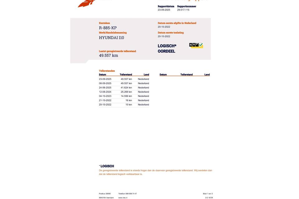 Huidige stand 49.557km