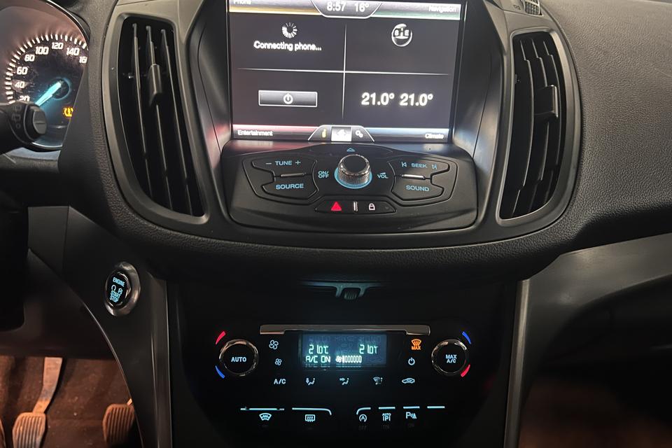 Tot de standaard uitrusting van deze auto hoort ook electronic climate control. De parkeersensoren registreren alles. Ook dat ene paaltje dat net buiten uw gezichtsveld valt. De automatisch inschakelbare verlichting en regensensor zorgen dat onderweg automatisch de verlichting en de ruitenwissers worden ingeschakeld. Daarmee nemen ze u veel werk uit handen. Cruise control houdt automatisch de ingestelde snelheid vast. Het is een ideaal hulpmiddel om lange ritten comfortabeler te maken. Een prettige optie is de keyless entry, die ervoor zorgt dat de Ford Kuga automatisch van het slot gaat als u dichtbij komt. Deze auto is voorzien van dashboard met spraakbediening, full map navigatiesysteem, automatisch dimmende binnenspiegel, lederen stuur, boordcomputer en lederen versnellingspook.