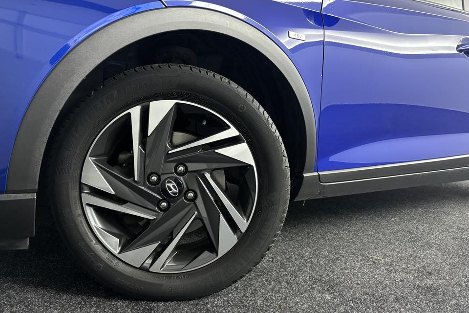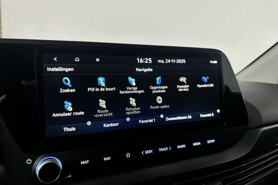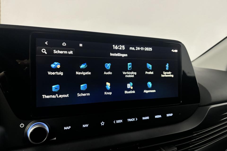De intelligente veiligheidssystemen in deze auto waken continu over jouw veiligheid. De actuele snelheidslimiet, een inhaalverbod en andere verkeersborden; de verkeersborddetectie ondersteunt je tijdens elke rit. Indien je onbedoeld de rijstrook lijkt te verlaten, reageert het Lane-keeping systeem meteen en corrigeert. Onbedoeld bumperkleven is er niet bij, dankzij de forward collision warning. Die waarschuwt direct als een botsrisico met je voorligger dreigt. In deze Hyundai vinden we verder een vermoeidheidsherkenning, autonoom remsysteem en bandenspanningcontrolesysteem.