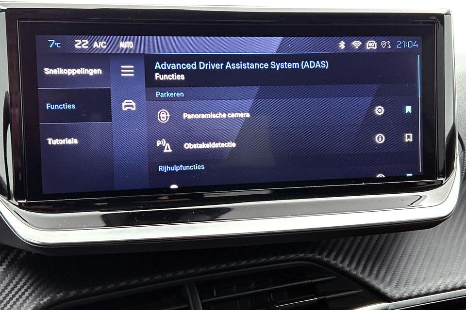 Als bestuurder van deze Peugeot bent u nooit alleen. U wordt onderweg bijgestaan door technologische hulpmiddelen die samen met u de weg in de gaten houden. Als het nodig is, grijpen ze zelfs in, door te remmen of bij te sturen. Een belangrijke bijdrage aan de veiligheid onderweg levert de verkeersbord-detectie in deze Peugeot. Voorzien van het Lane-keeping systeem. Ofwel: blijf automatisch in je baan. Onbedoeld bumperkleven is er niet bij, dankzij de forward collision warning. Die waarschuwt direct als een botsrisico met uw voorligger dreigt. Verder is deze auto uitgerust met dodehoekdetectie, hill hold functie, brake assist, vermoeidheidsherkenning en bandenspanningcontrolesysteem.