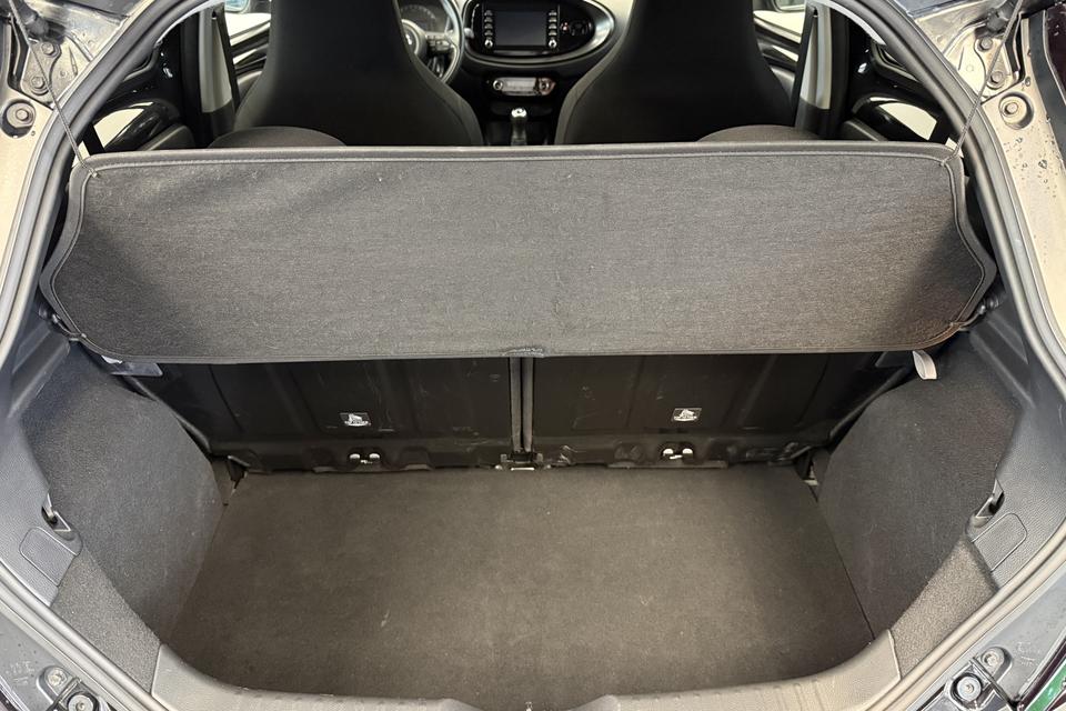 De achteruitrijcamera vergemakkelijkt achteruit inparkeren. U ziet duidelijk wat er achter de auto gebeurt. Adaptive cruise control is veilig en comfortabel. De snelheidsregelaar houdt automatisch afstand tot het voertuig dat voor u rijdt. Ook onderweg wilt u superieure geluidskwaliteit naar eigentijdse normen. Vandaar het uitstekende audiosysteem met DAB-radio. Omdat u nu eenmaal niet overal ogen heeft, is deze Toyota Aygo X voorzien van een achteropkomend verkeer waarschuwing die registreert wanneer de afstand tot uw achterligger te krap is. Of het buiten nu warm is of koud, dankzij automatische airconditioning is het binnen altijd behaaglijk. Ook regensensor, lederen stuur en centrale deurvergrendeling met afstandsbediening horen tot de voorzieningen op deze auto.