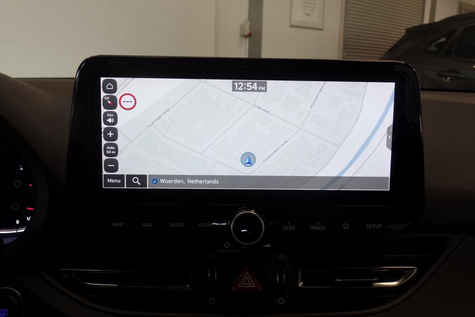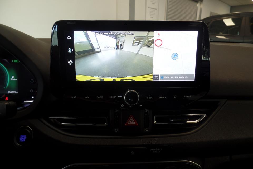 Parkeer en kijk niet om! De achteruitrijcamera doet dat voor u. Deze Hyundai i30 is voorzien van remote services. Via uw smartphone bedient u diverse functies ook op afstand en krijgt u informatie over de status van uw auto. Uw veiligheid op de weg wordt verhoogd door het audiosysteem met DAB-ontvangst en het navigatiesysteem te bedienen vanaf het stuur of met spraakbediening, zodat uw handen veilig op het stuur blijven en uw ogen gericht zijn op de weg. Smartphones die zonder snoer kunnen opladen halen simpel een volle accu via de draadloze oplaadmogelijkheid voor telefoons. Het comfort wordt verhoogd door de aanwezige automatische airconditioning. Ook is de Hyundai uitgerust met: regensensor, cruise control, keyless entry, automatisch dimmende binnenspiegel, lederen stuur en boordcomputer.