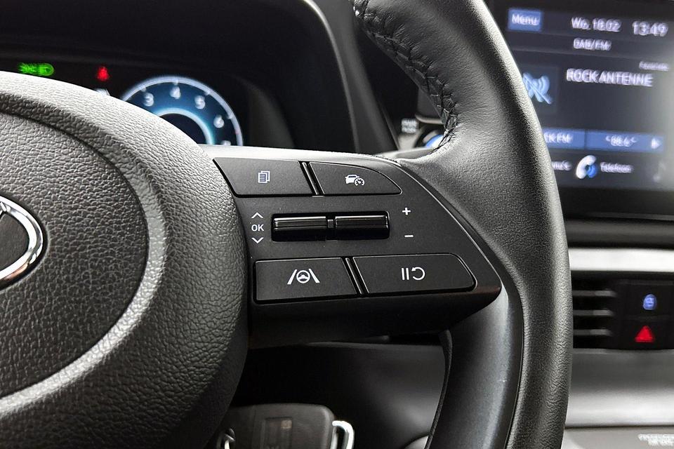 Voor het overzicht tijdens iedere rit is deze Hyundai i20 voorzien van een gemakkelijk afleesbaar digitaal dashboard. Afstand schatten bij het achteruitrijden? Niet nodig. U weet het precies, dankzij de achteruitrijcamera. Intelligente spraakbediening herkent uw commando's en voert opdrachten snel en soepel uit. Pech of storing, altijd vervelend. Maar met Connected Services weet u direct wat eraan scheelt. En dus ook wat er moet gebeuren. Voor wie hoge eisen stelt aan geluid en akoestiek, is deze auto voorzien van een high performance audiosysteem. De uitrusting van deze Hyundai is met DAB ontvangst, cruise control, airconditioning, isofix-aansluiting en centrale deurvergrendeling met afstandsbediening behoorlijk compleet.