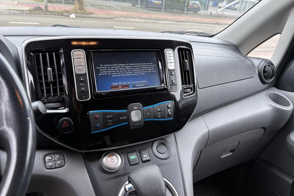 Het stuur van de Nissan e-NV200 is multifunctioneel, waardoor u eenvoudig toegang heeft tot diverse functies zonder uw handen van het stuur te hoeven halen. Daarnaast zorgt de radio voor een aangename sfeer tijdens het rijden en kunt u altijd genieten van uw favoriete muziek. Met het alarm klasse 1 (startblokkering) bent u verzekerd van optimale beveiliging tegen diefstal.