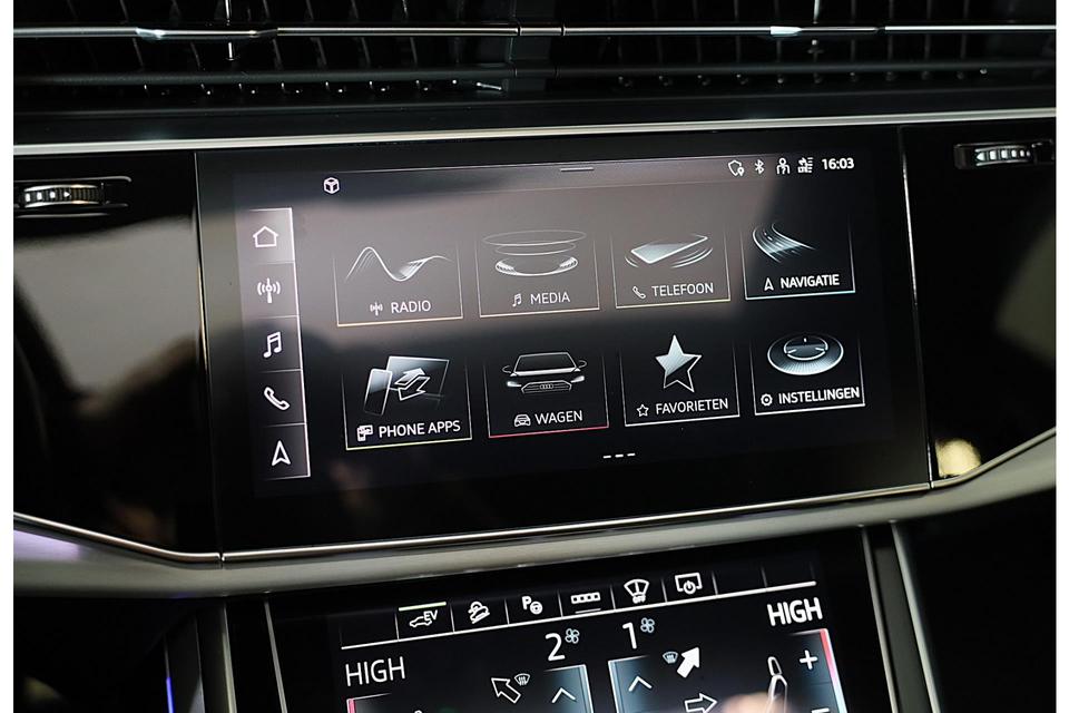 Hij oogt indrukwekkend en sportief, deze Audi Q8. Trap het gaspedaal in en voel de geweldige acceleratie van de zescilinder motor van deze sportwagen. Een fraai lederen interieur, dat in daglicht baadt dankzij het elektrisch bediende glazen panorama dak. En voor 'handsfree' in- en uitladen vindt u aan de achterzijde de elektrisch bedienbare achterklep. Zelfs op de koudste dagen zorgen de stoelverwarming met massagefunctie, stuurverwarming en verwarmbare achterbank voor een comfortabele rijervaring. U past de stoelen moeiteloos aan, ze zijn elektrisch in te stellen en hebben bovendien een geheugen. Niet alleen u zelf geniet van de luchtvering; ook uw banden en remmen hebben veel minder te verduren. En de ergonomische comfortstoelen zorgen voor volmaakte ontspanning. Als u eenmaal kennis hebt gemaakt met het elektrische cabriodak dan weet u het zeker: bij deze auto is over elk detail nagedacht. Xenonverlichting staat borg voor helderwit licht en een krachtige lichtbundel. De uitmonstering van deze auto wordt gecompleteerd door onder meer 20 inch lichtmetalen velgen, LED koplampen, warmtewerend glas, zwarte hemelbekleding, LED-achterlichten en verstelbare lendensteunen.