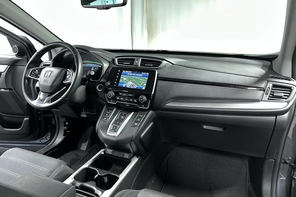 Van uw nieuwe auto verlangt u rijplezier, maar ook optimaal comfort en veiligheid. Daarom is de Honda CR-V de auto die u zoekt. De combinatie van een verbrandingsmotor en een elektromotor zorgt voor prima rij-eigenschappen en een laag brandstofverbruik. Deze Honda CR-V legt bestuurder én bijrijder compleet in de watten met de verwarmbare voorstoelen. U wordt in deze auto ook getrakteerd op 18 inch lichtmetalen velgen, LED koplampen, extra getint glas, in delen neerklapbare achterbank, LED-achterlichten en verstelbare lendensteunen.