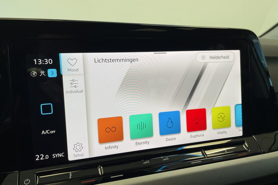 Deze auto is voorzien van een digitaal dashboard waarmee u de cockpit-interface kunt personaliseren. Met adaptive cruise control houdt de auto zelfstandig afstand tot uw voorligger. Een veiligheidsverhogende optie waarmee u comfortabel onderweg bent. Bij deze auto is uw smartphone een geavanceerde afstandsbediening. Remote services brengen u overal in contact met uw auto. In deze Golf vindt u schakelaars op het stuur om het full map navigatiesysteem te bedienen en het audiosysteem met DAB-ontvangst. Gedoe met kabels en stekkers in de sigarettenaansteker is voorbij. De aanwezige draadloze oplaadmogelijkheid voor telefoons zorgt voor wireless recharging van uw smartphone. Met achteropkomend verkeer waarschuwing, kruisend verkeer detectie, automatische airconditioning, schakelpaddles aan het stuur, parkeersensoren achter en centrale deurvergrendeling met afstandsbediening is deze auto helemaal compleet.