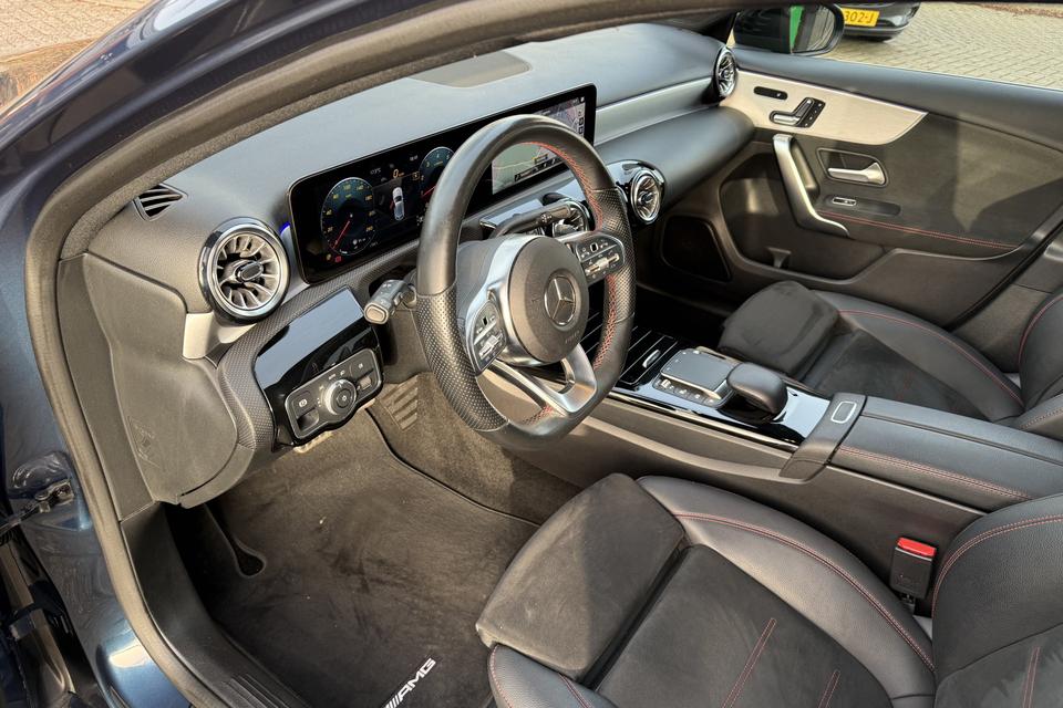 Ontdek de vele kwaliteiten van de Mercedes-Benz A-klasse. Met zijn tijdloze design, zijn krachtige motor en zijn vele veiligheidssystemen laat deze auto u versteld staan. Ook qua looks springt deze auto eruit, vanwege de fraaie AMG-styling. Hij heeft een benzinemotor en een automatische transmissie. Bestuurder en bijrijder krijgen een warm welkom: deze Mercedes-Benz A-klasse is voorzien van verwarmbare voorstoelen. De sportstoelen zorgen voor een strak uiterlijk én een uitstekende zitsteun. De uitmonstering van deze auto wordt gecompleteerd door onder meer 17 inch lichtmetalen velgen, LED koplampen, AMG-styling, donker getint glas achter, in delen neerklapbare achterbank en verstelbare lendensteunen.