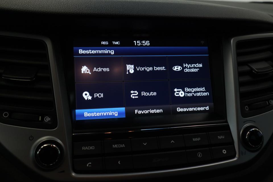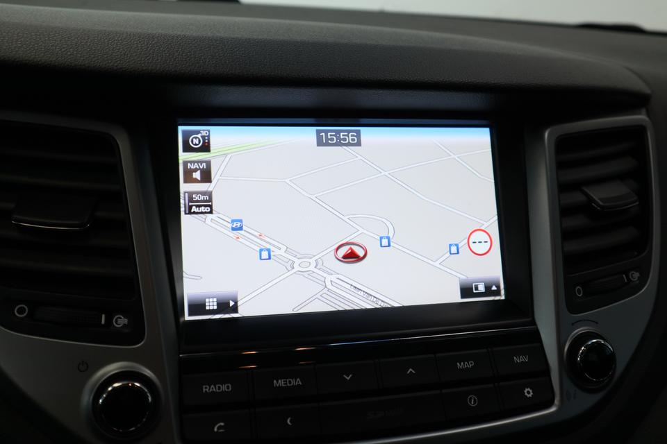 Geen nekkramp of spiegelwerk meer bij het achteruitrijden: de achteruitrijcamera kijkt en ziet alles! Met de routebegeleiding van het navigatiesysteem kunt u zich volledig op het verkeer concentreren. Aan boord van deze Hyundai Tucson is een achteropkomend verkeer waarschuwing voor extra veiligheid. Automatische airconditioning regelt volautomatisch de temperatuur. U kiest de gewenste temperatuur en het systeem doet de rest. Switchen van radiozender of het geluid dempen - het gaat gemakkelijk en veilig dankzij de audiobediening op het stuur. En dan is deze auto ook nog eens voorzien van DAB ontvangst, regensensor, cruise control, automatisch dimmende binnenspiegel, lederen stuur en lederen versnellingspook.